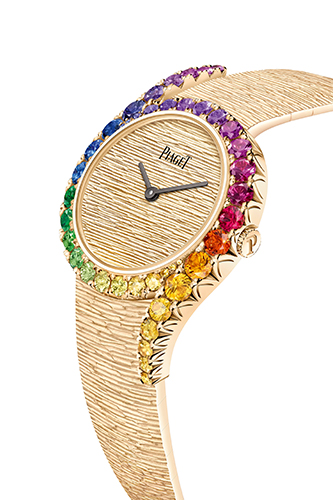 ความน่าสนใจของ Limelight Gala เฉดสีรุ้งเรือนนี้ นอกจากจะเป็นครั้งแรกในประวัติศาสตร์ของเมซงที่นำเสนอเรือนเวลาที่ผสานเข้ากับอัญมณีหลากหลายสีสันแล้ว ยังเสริมความเป็นเลิศด้วยการใส่ระบบกลไกอัตโนมัติแบบใหม่ล่าสุดที่ผลิตขึ้นในโรงงานของเมซง อย่าง 501P1 ไว้อีกด้วย เพื่อเสริมประกายงามให้ดูเด่นขึ้นอีกขั้น แบรนด์เลือกตกแต่งขอบตัวเรือนด้วยเหล่าอัญมณีหลากสี อย่าง ซาวอไรต์สีเขียวและแซฟไฟร์ไล่เฉดตั้งแต่ สีแดง ส้ม เหลือง น้ำเงิน อินดิโก ไปจนถึงสีม่วง โดยร้อยเรียงแต่ละเม็ดด้วยเทคนิค Serti Descendu ที่ช่วยเผยให้เห็นประกายงามได้ชัดเจนกว่าการฝังลงไปในเนื้อทองแบบที่ใช้ทั่วไปในปัจจุบัน และนี่จริงเป็นเหตุผลที่ว่า ทำไมเรือนเวลาชิ้นนี้จึงเป็น Limited Piece ที่ควรค่าแก่การครอบครอง สนนราคา 3,370,000 บาท