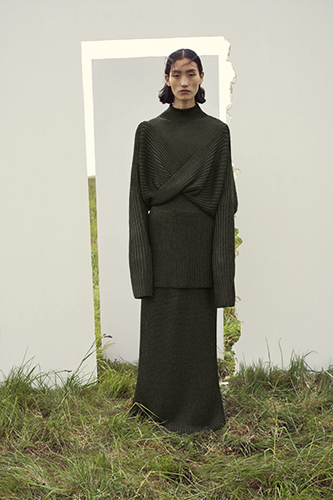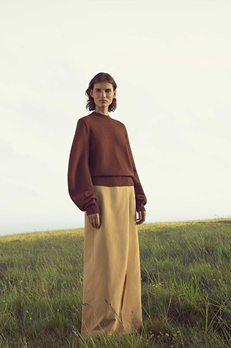 ผ้าแคชเมียร์, โค้ทผ้าวูลแบบมีโครง, เสื้อเชิ้ตผ้าฝ้าย และเสื้อสเว็ตเตอร์แบบสกูบ้า ผสมผสานกันเป็นคอลเลคชั่นที่ดูแปลกตาแต่เข้ากันได้เป็นอย่างดี ประกอบไปด้วยโทนสีเทาและสีที่ดูอ่อนละมุน เช่น สีหิน สีโอ๊ตมีล ทำให้เกิดความบางเบา และเติมความอบอุ่นด้วยสีสนิมและสีพลัม