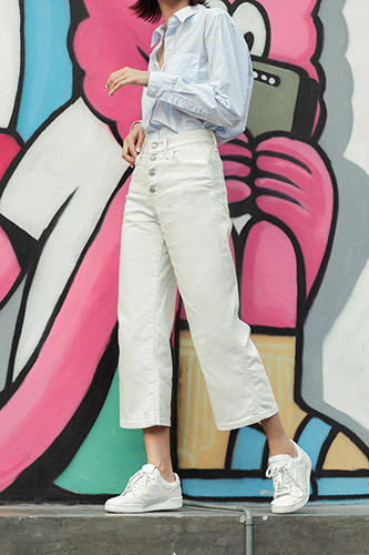 นอกเหนือจากนั้นยังมีเทรนด์ยีนส์วินเทจที่ได้รับความนิยมไม่แพ้กัน อย่างเช่น Dad Jeans กางเกงยีนส์ทรงยอดฮิตยุคคุณพ่อ ที่มีความหลวมเล็กน้อย ความยาวพอประมาณ แต่ยังคงกลิ่นอายความเป็น Dad Jeans ไว้ด้วยสีน้ำเงิน ดำ ยีนส์ฟอกซีด อันเป็นเอกลักษณ์ของยีนส์ ซึ่งสามารถแมทช์ได้กับทุกไอเท็มในตู้เสื้อผ้าอย่างลงตัว เพิ่มความเท่ด้วยรองเท้าแพลตฟอร์มสไตล์วินเทจ สร้างความโดดเด่นจนใครเห็นก็ต้องเหลียวมอง