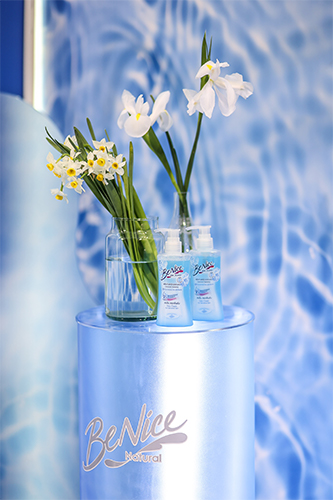 ล่าสุดร่วมเปิดประสบการณ์ใหม่ในการบำรุงผิวอีกระดับกับ “BENICE NATURAL SERIES” ในธีม INDULGE YOUR SKIN WITH BENICE, THE NATURAL BEAUTY DESTINATION แนะนำกลุ่มผลิตภัณฑ์ใหม่ล่าสุด “บีไนซ์ เนเชอรัล สกิน ทรีทเม้นท์ ชวนสาวๆ สัมผัสมาตรฐานใหม่ของผิวนุ่มชุ่มชื้นจากธรรมชาติผ่านบรรยากาศที่รวบรวมเอาดอกไม้และผลไม้ที่เป็นตัวแทนทั้ง 2 สูตรปรนนิบัติผิวสวย และยังคงเอกลักษณ์ความหอมสดชื่นแบบฉบับบีไนซ์ที่ยืนหนึ่งไม่เหมือนใคร พร้อมทําความรู้จักกับอีก 3 ซีรีส์ผลิตภัณฑ์ไฮไลท์จากบีไนซ์ ได้แก่ บีไนซ์ พีช เลิฟซี รีส์ (BeNice Peach Love Series), บีไนซ์ แอนตี้แบค แอนตี้โพลูชั่น (BeNice Anti-Bac Anti-Pollution) และ บีไนซ์ เฟมินิน วอล์ช ดีโอ เฟรซ (BeNice Feminine Wash Deo Fresh)